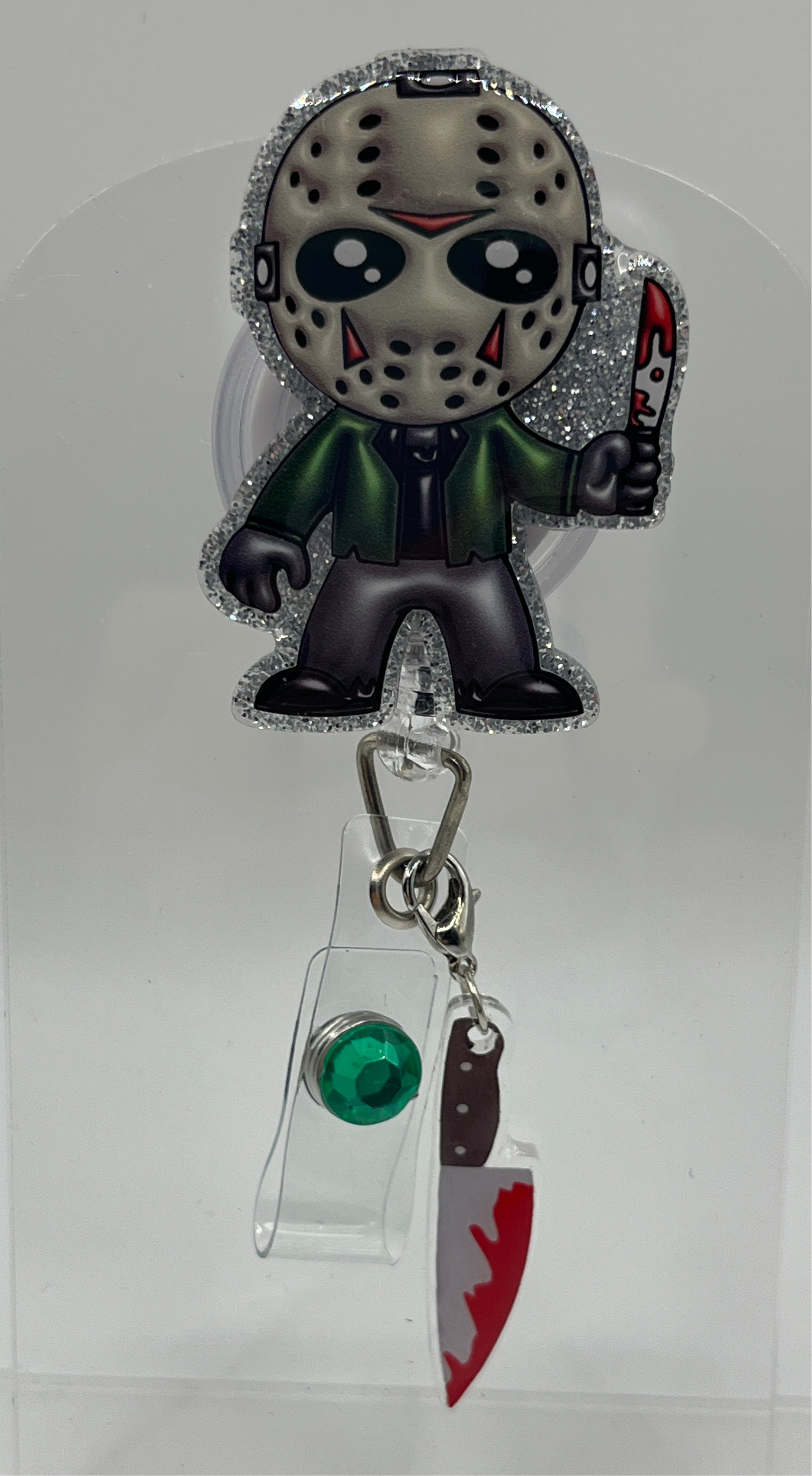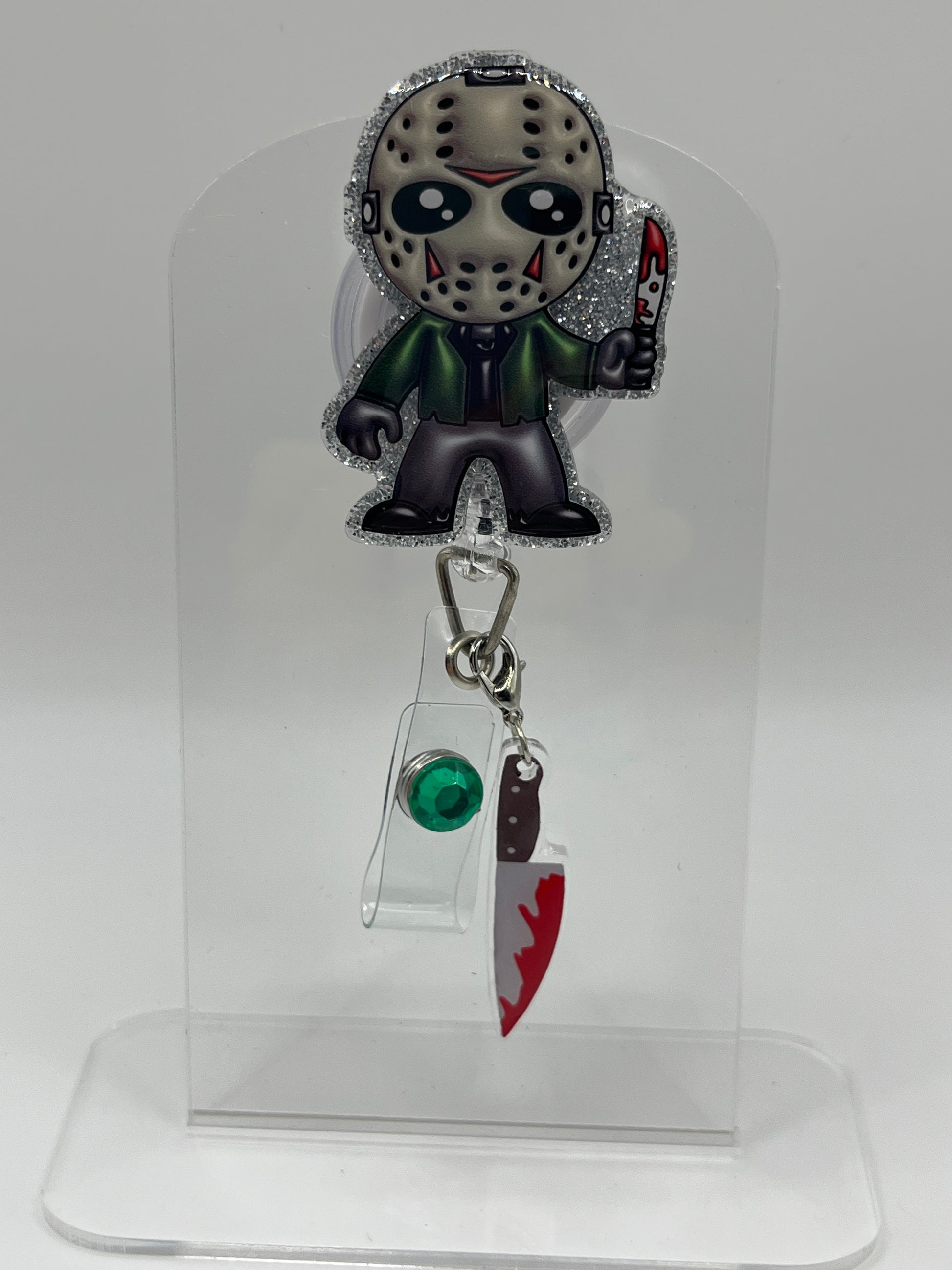 2 inch acrylic badge reel with alligator clasp. This badge reel comes with matching charm!