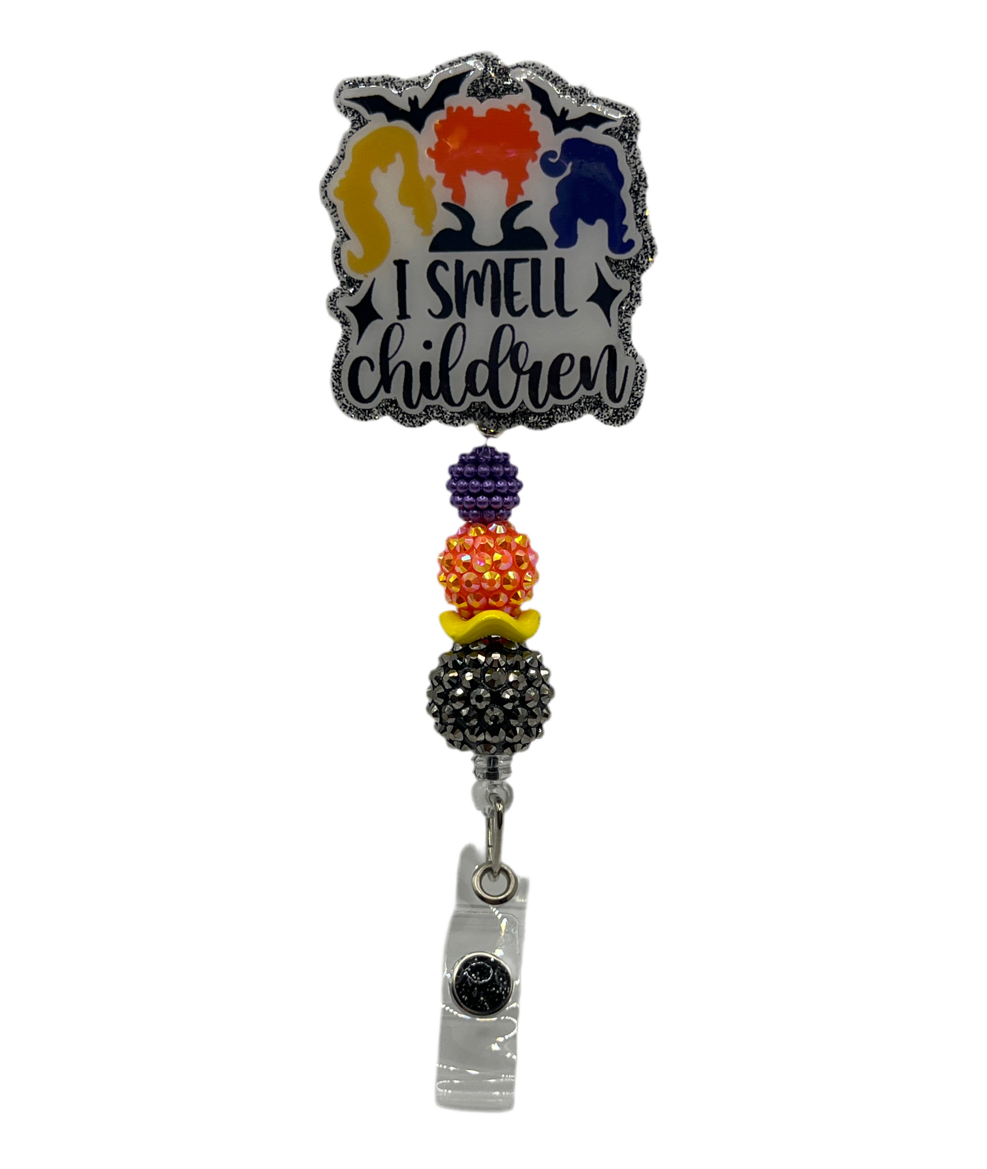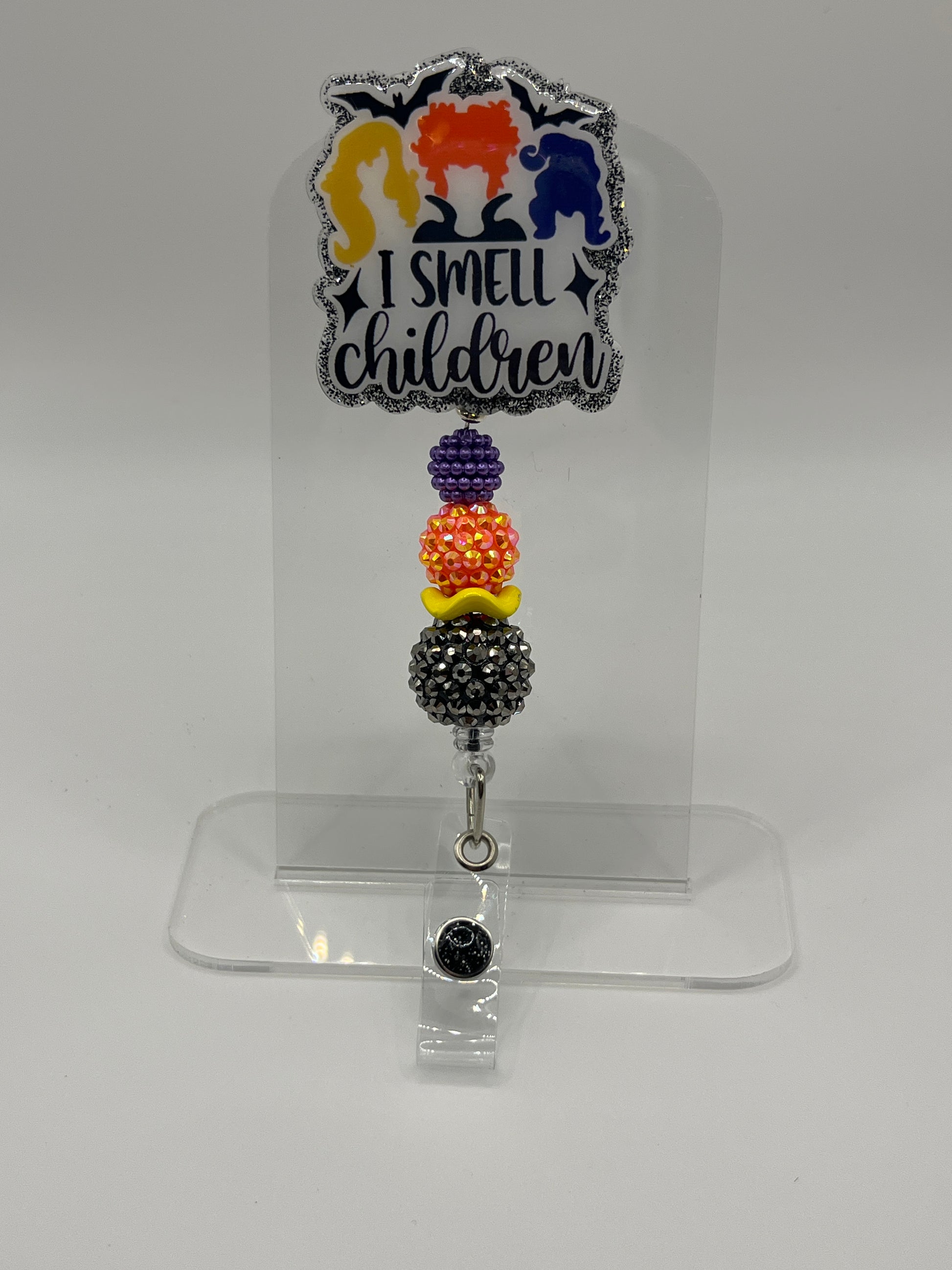 2 inch acrylic badge with alligator clip.