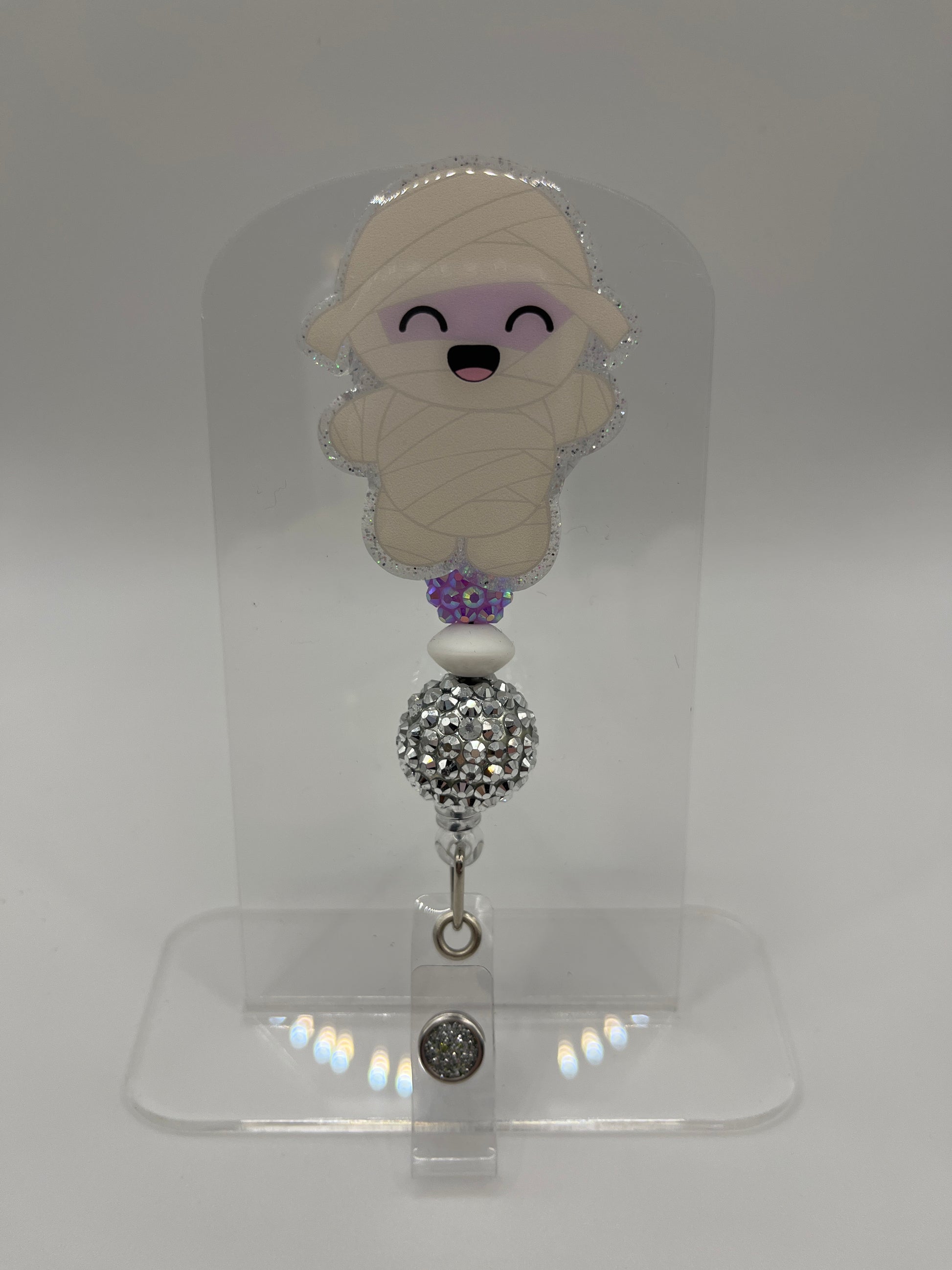 2 inch acrylic badge with alligator clip.