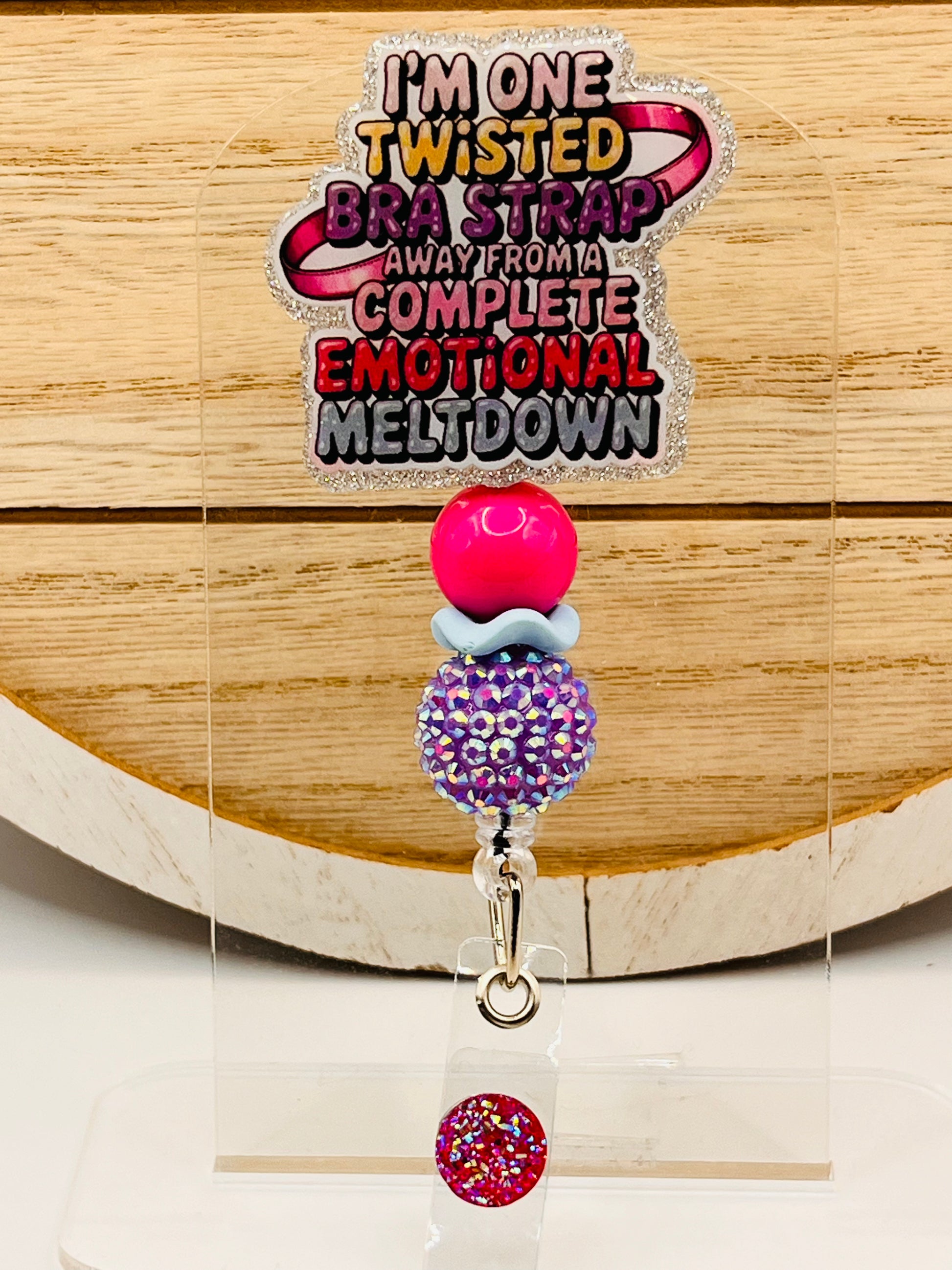 Handmade Approximately 2 inch acrylic badge reel with alligator clasp. Belt clip available upon emailed request.